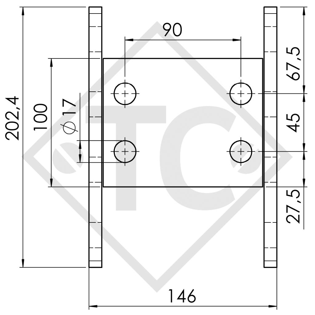 - Placa deslizante pretaladrada con 4 orificios para una fijación con 2 o 4 tornillos conforme a la Directiva ECE-R55-01