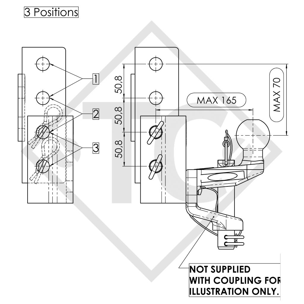 egulable en altura: 3 posiciones en intervalos respectivos de 50mm, variante con 2 bolas 19mm de diámetro para una fijación segura mediante chavetas hendidas, 4 orificios para una fijación con 2 o 4 tornillos conforme a la Directiva ECE-R55-01. Leer más...
