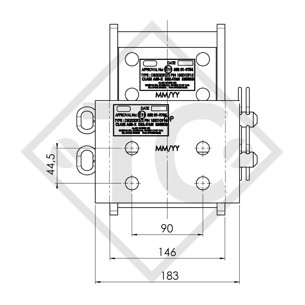 - Placa deslizante pretaladrada con 4 orificios para una fijación con 2 o 4 tornillos conforme a la Directiva ECE-R55-01