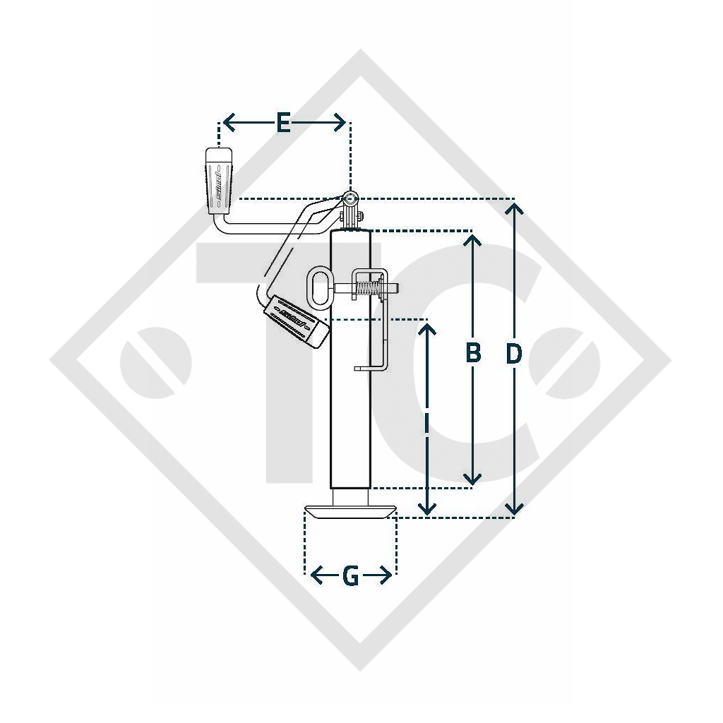 Accueil / Béquille basculable de côté ø57mm rond avec support, manivelle escamotable, type SF 3102, zingué, pour machines et remorques agricoles, machines pour l'industrie du bâtiment, équipements pour l’entretien routier et l’enneigement