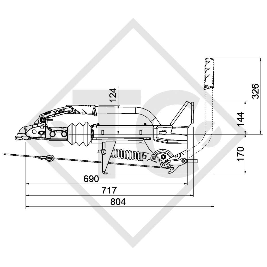 raccord 166mm, montage haut + bas, combinable au frein de roue AL-KO 3062 / 3081, avec tête d'attelage AK 270, Soft-Dock. Lire plus...