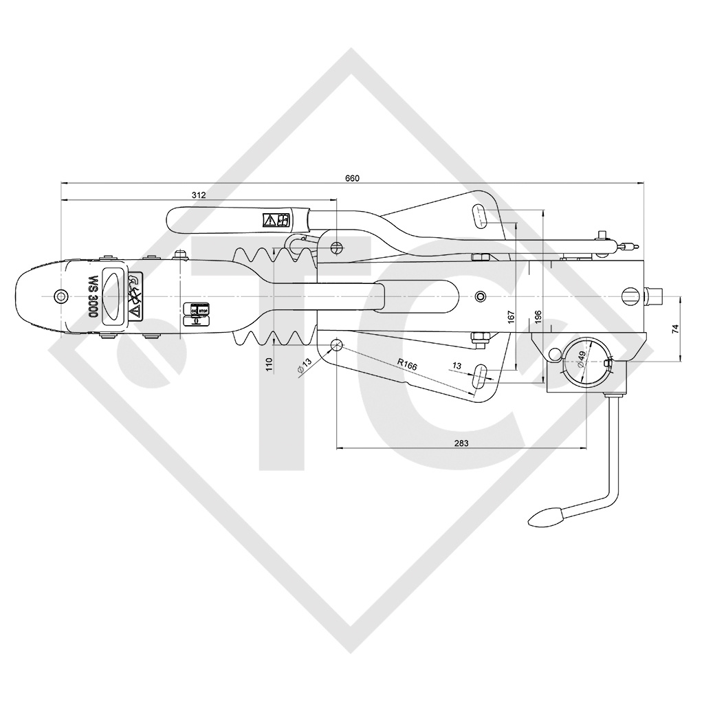 raccord 166mm, charge à la rotule 150kg, version commande de freinage haut, combinable au frein de roue BPW S1704-7, S2005-7 et S2504-7 RASK, avec tête d'attelage WS 3000-D. Lire plus...