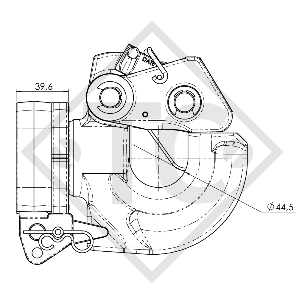 charge remorque: 3.5 t, Valeur D: 30.95 kN, anneau d’accrochage : dia. int. mini. 75mm, épaisseur de section : 38-41mm, avec axe en inox et verrouillage sécurisé par goupille fendue, montage par 4 vis conformément au Règlement ECE-R55-01, vis fournies, co