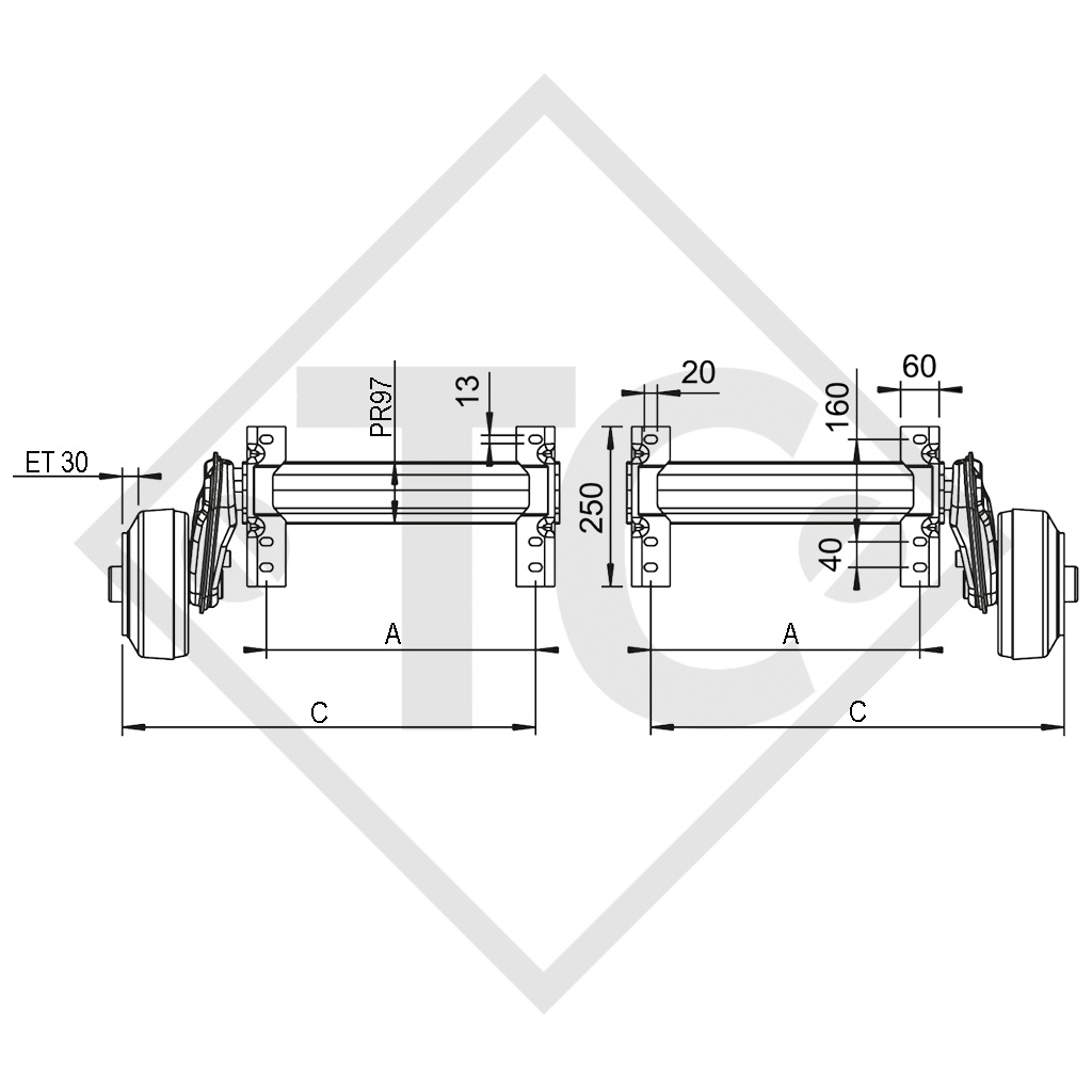 Accueil / Demi-essieux freinés 1500kg type d'essieu B 1600-3 (paire)