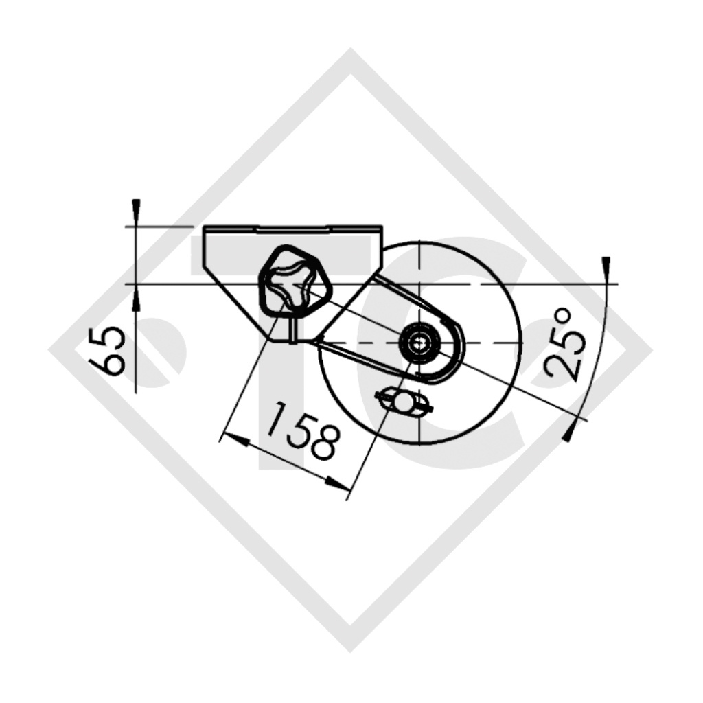 EAB : cote A 1320mm, VOIE : cote C 1840mm, empattement 700mm, perçage 100x4, type de frein de roue 2051 A, déport (ET) 27-33mm, position du bras de suspension 25°, corps d'essieu 80mm, vis de roue coniques M12x1.5. Lire plus...