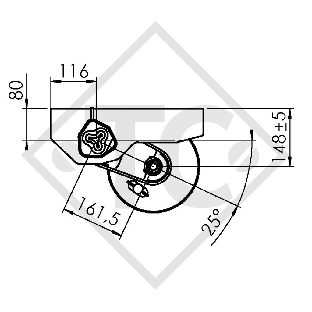EAB : cote A 1270mm, EAB : cote A2 750mm, VOIE : cote C 1790mm, perçage 112x5, type de frein de roue 2051 Ab, déport (ET) 30mm, position du bras de suspension 25°, corps d'essieu 97mm, vis de roue sphériques M12x1.5. Lire plus...
