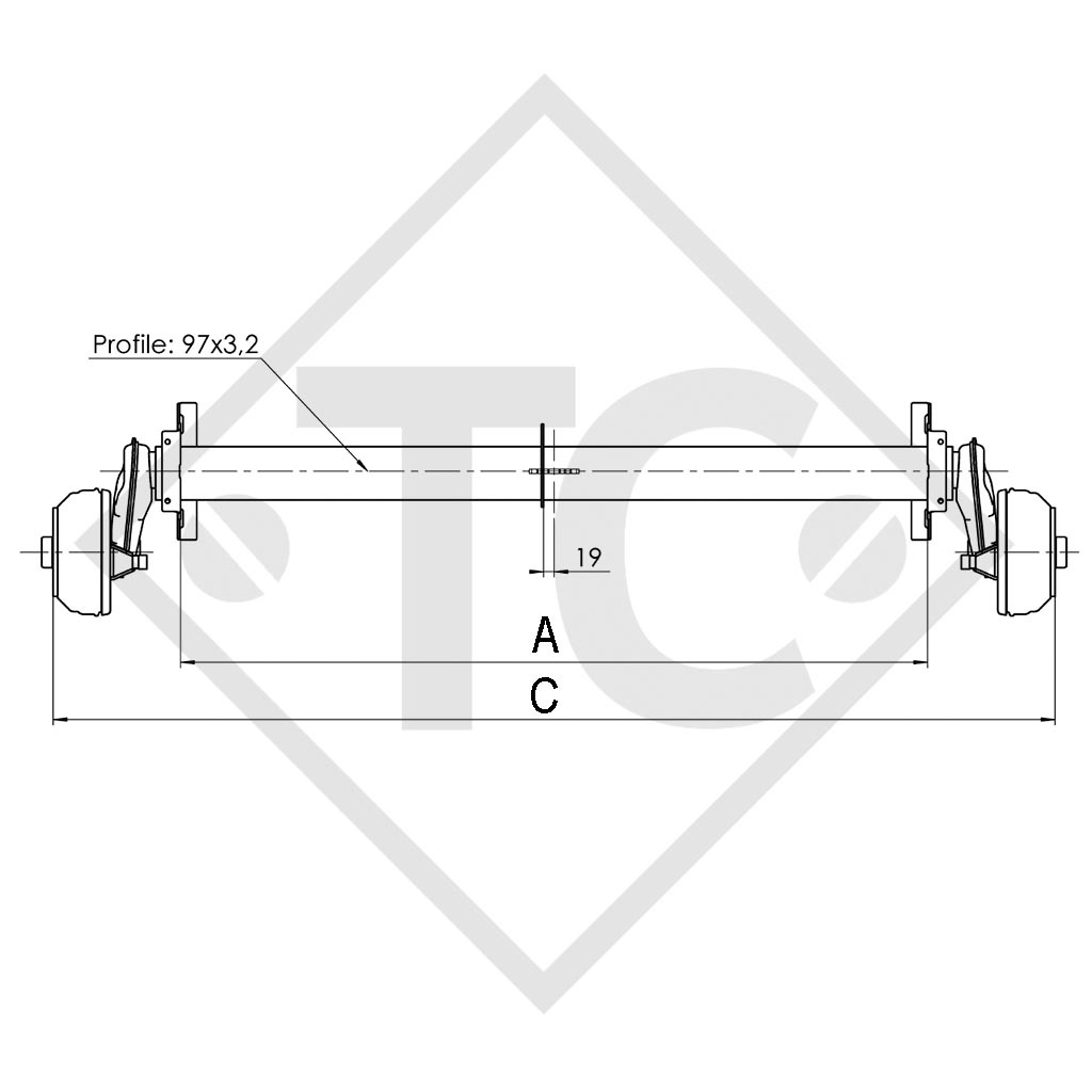 EAB : cote A 1350mm, VOIE : cote C 1810mm, perçage 112x5, type de frein de roue 2051 vers. A, déport (ET) 26-30mm, position du bras de suspension 25°, corps d'essieu 97mm, vis de roue sphériques M12x1.5. Lire plus...