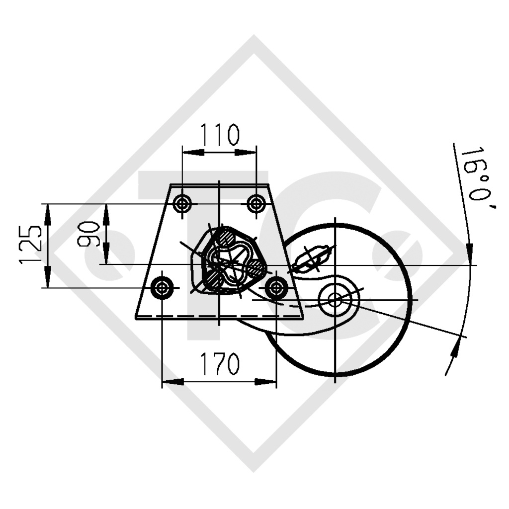 EAB : cote A 1355mm, VOIE : cote C 1865mm, perçage 100x4, type de frein de roue 2051 A, déport (ET) 30mm, position du bras de suspension 16°, corps d'essieu 97mm, vis de roue sphériques M12x1.5. Lire plus...