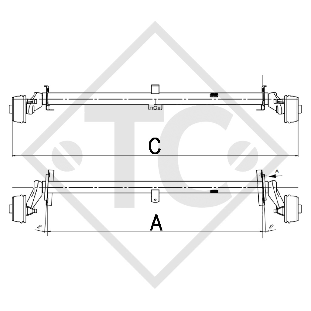 EAB : cote A 1460mm, VOIE : cote C 1940mm, perçage 100x4, type de frein de roue 1637, déport (ET) 27-33mm, position du bras de suspension 25°, corps d'essieu 80mm, vis de roue coniques M12x1.5. Lire plus...