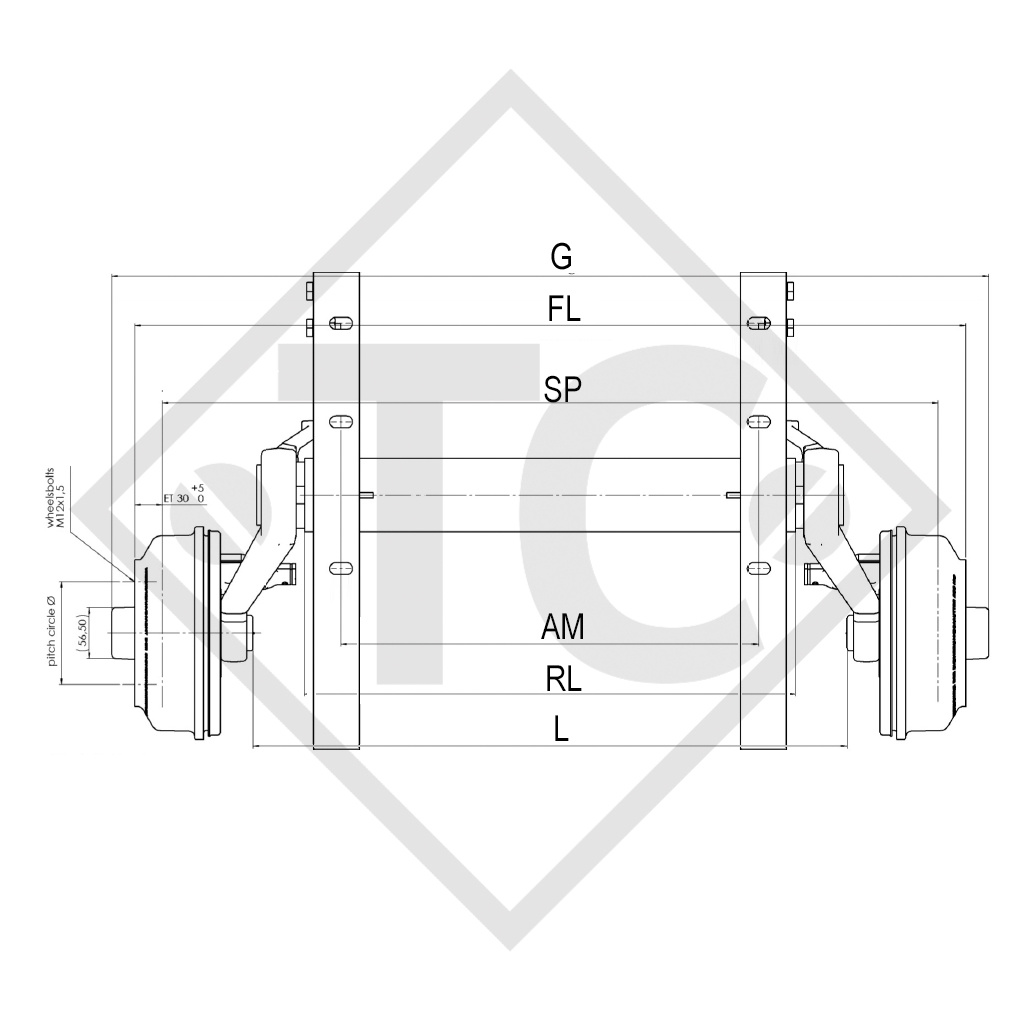 EAB : cote AM 1000mm, VOIE : cote FL 1450mm, perçage 112x5, type de frein de roue S 2005-7 RASK, déport (ET) 30mm, position du bras de suspension 20°, corps d'essieu 80mm, vis de roue sphériques M12x1.5. Lire plus...