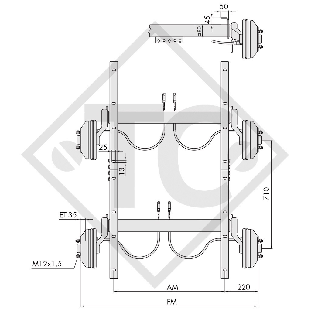 Accueil / Mots-clés / zugdeichsel / Essieu tandem freiné 2700kg type d'essieu WAGT 27