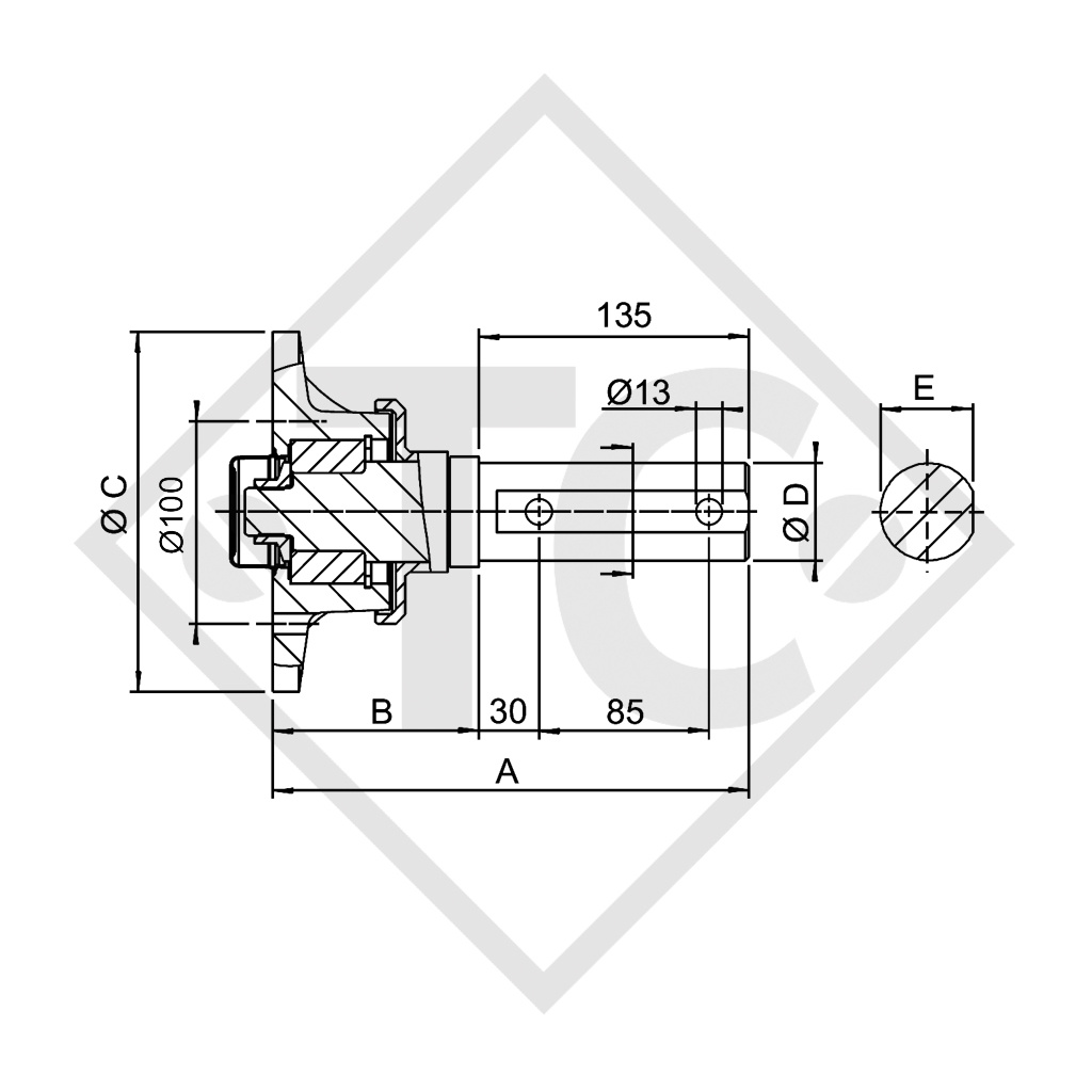 Accueil / ÉLÉMENT DU CHÂSSIS / ÉLÉMENT DU CHÂSSIS BPW / ESSIEUX / ESSIEU SWING 1800KG FREINÉ, TYPE D'ESSIEU CB 1805, TUBE D'ESSIEU CARRÉ 95MM / Moyeu étanche avec fusée à visser