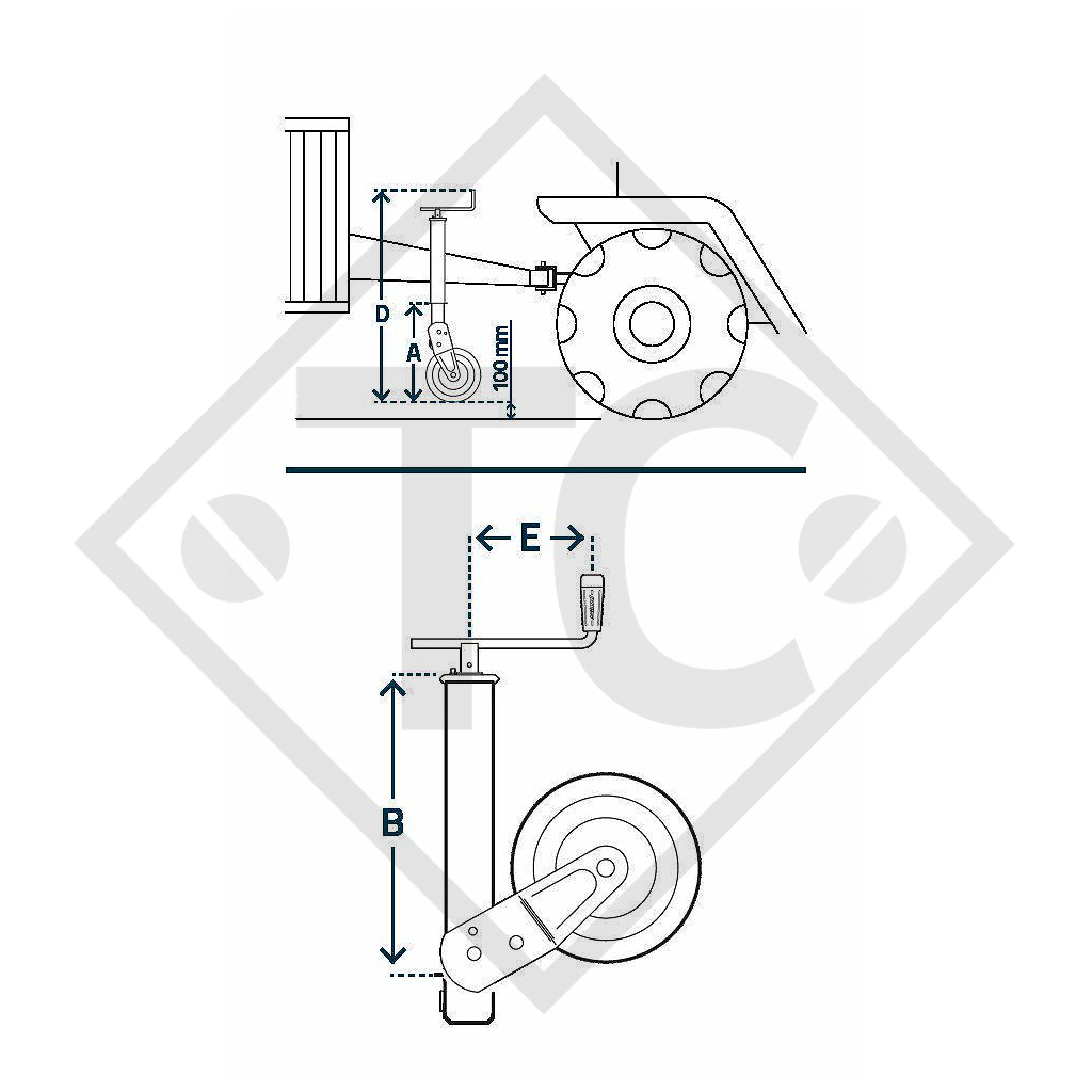 Accueil / Roue jockey □70mm carré avec sabot entièrement automatique, manivelle supérieure, type A 105, pour machines et remorques agricoles, machines pour l'industrie du bâtiment, équipements pour l’entretien routier et l’enneigement