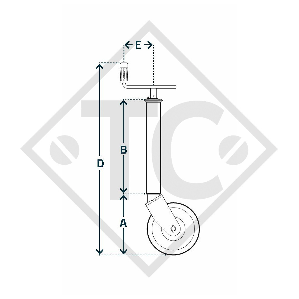 Accueil / Roue jockey ø60mm rond, sabot fixe, manivelle supérieure, type FO 260, pour machines et remorques agricoles, machines pour l'industrie du bâtiment, équipements pour l’entretien routier et l’enneigement