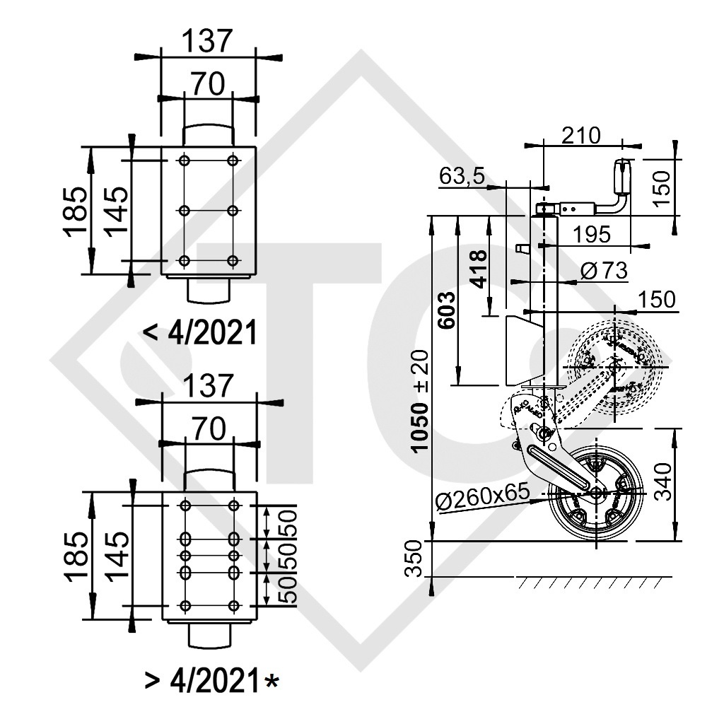 Accueil / Marques / LEMMERZ / MAXION / Roue jockey ø73mm rond sabot entièrement automatique, manivelle escamotable, 1657239, pour caravanes, remorques-auto, machines pour l'industrie du bâtiment