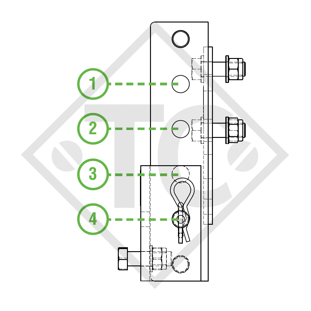 - Boulon d’un ⌀ de 19mm pour une fixation sûre avec goupilles fendues