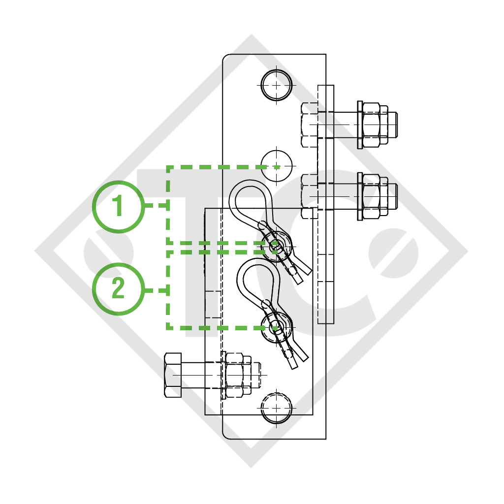 - Boulon d’un ⌀ de 19mm pour une fixation sûre avec goupilles fendues