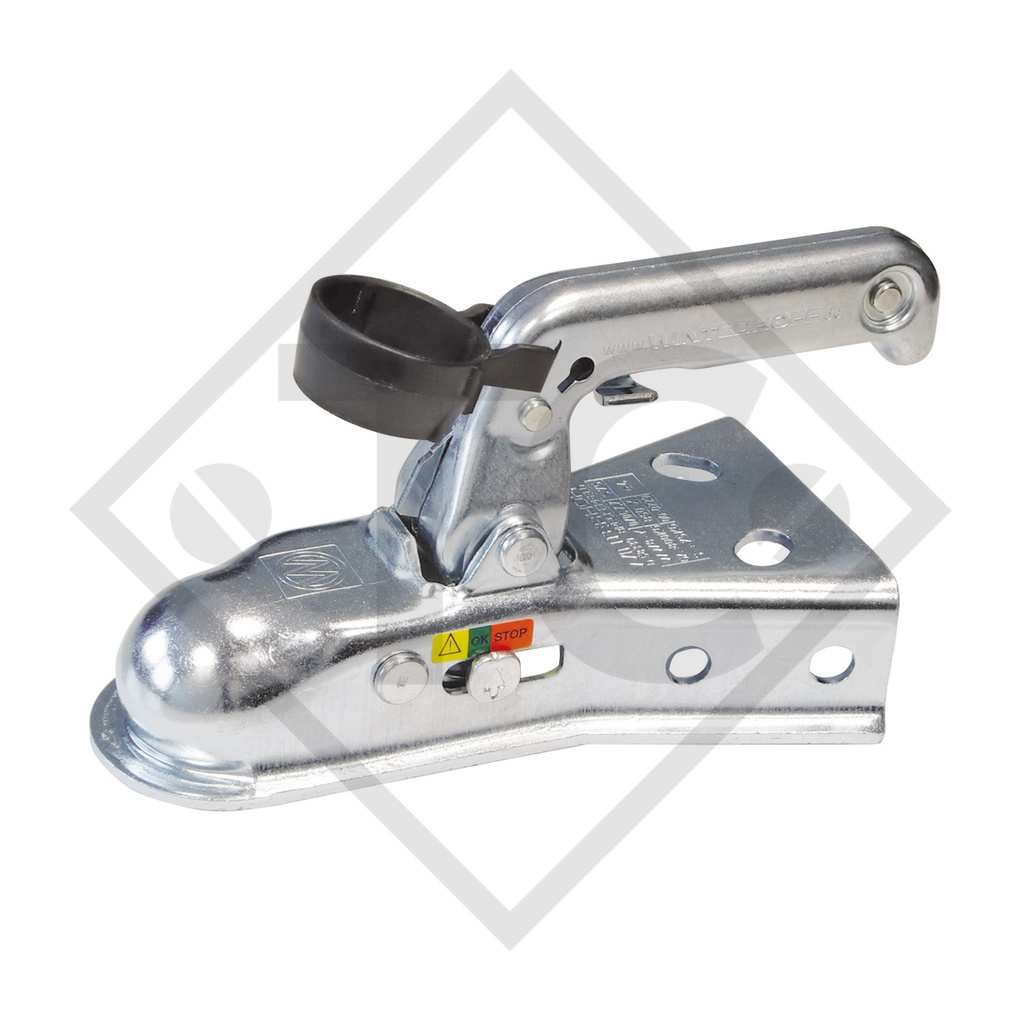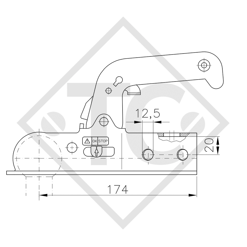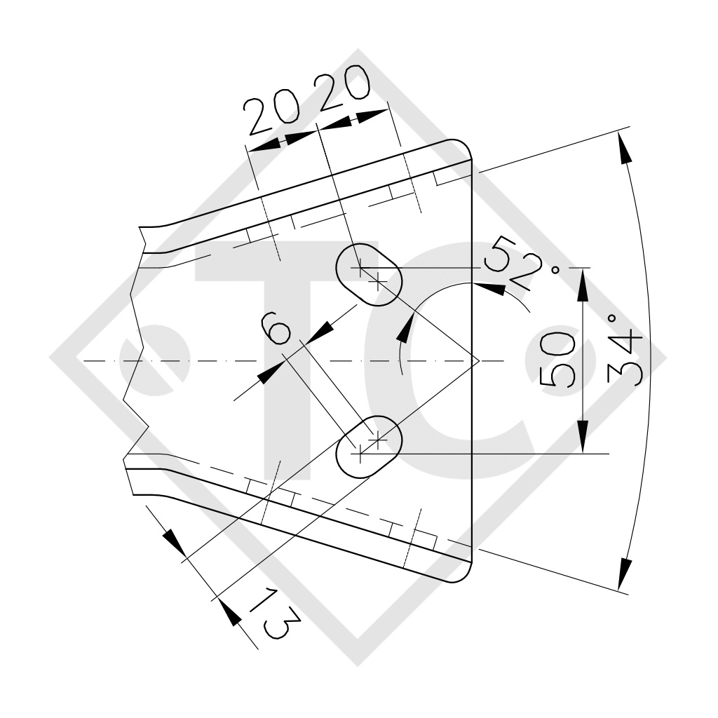 de timon V 34°, perçages (boulonnage) horizontal 12.5mm, écart trous de ⌀ de timon 40mm, perçages (boulonnage) verticale 13mm, écart trous de ⌀ de timon 50mm, PTAC maxi 800kg, charge à la rougeule 75kg, matériau : acier. Lire plus...