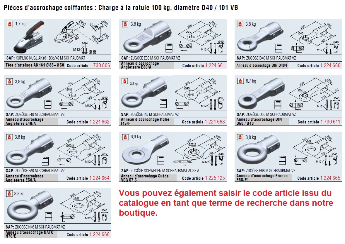 Têtes d’attelage, anneaux et diverses petites pièces zingués(non fournies)
