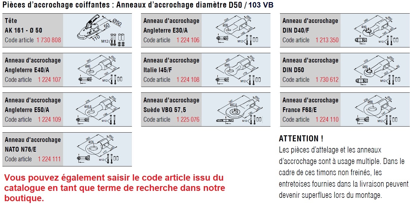 Têtes d’attelage, anneaux et diverses petites pièces zingués (non fournies)