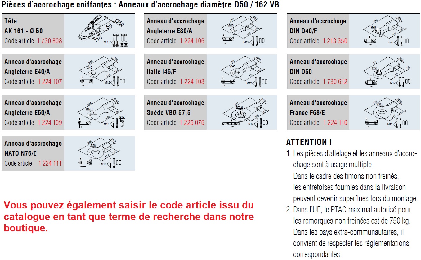 Têtes d’attelage, anneaux et diverses petites pièces zingués (non fournies)
