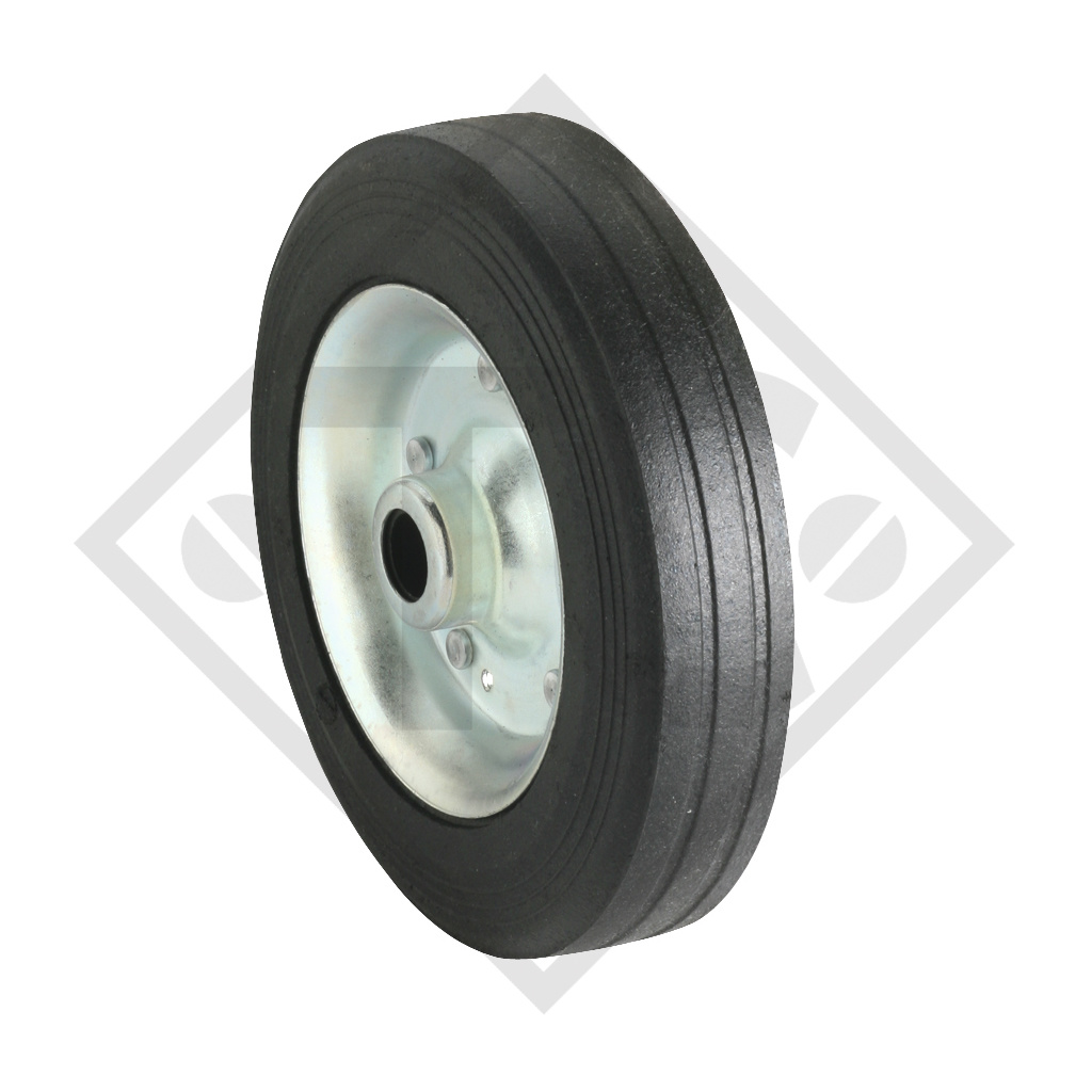 roue 200x50mm caoutchouc, jante acier, moyeu 20x58mm, charge d’appui statique 200kg.