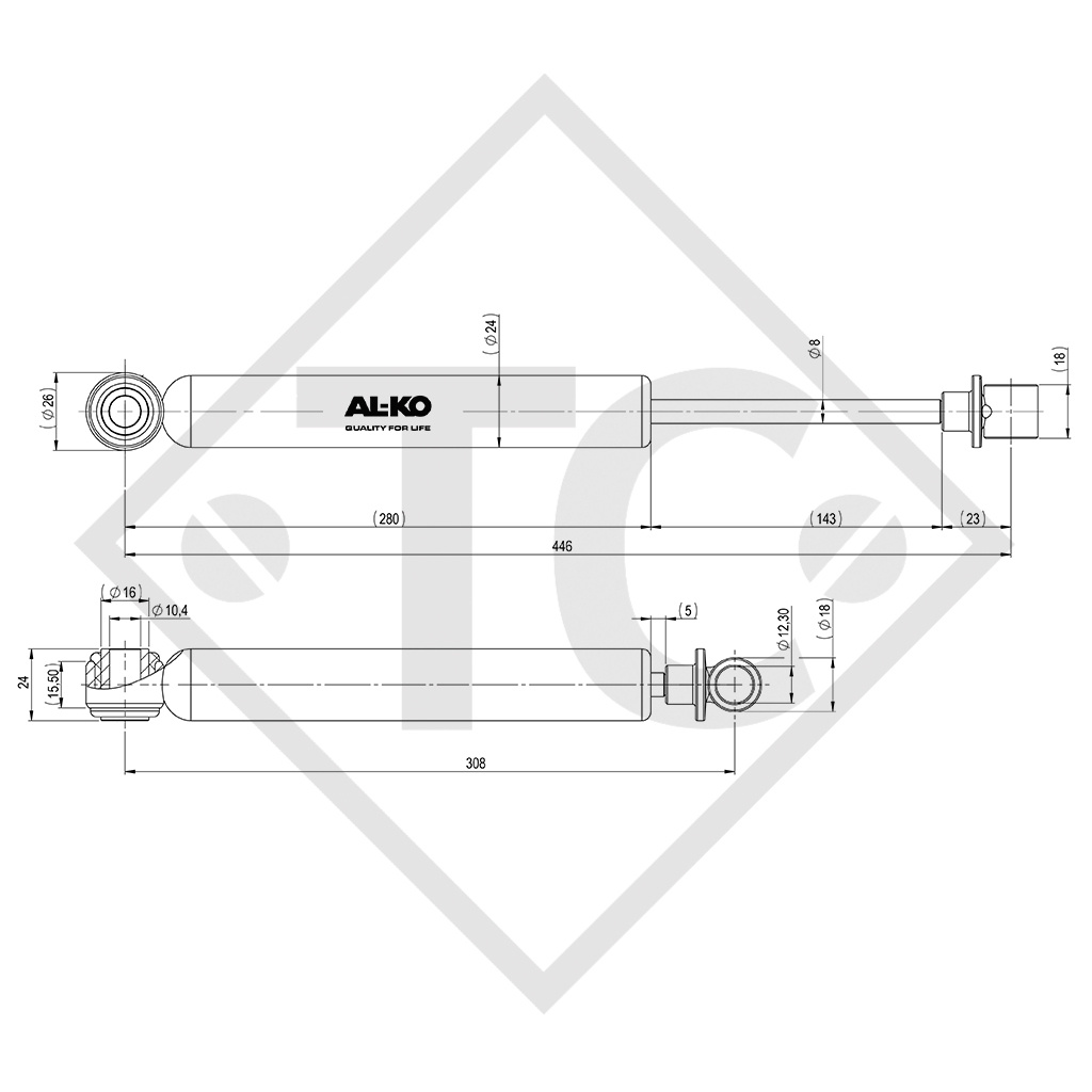 Home / AUTOTELAI PER RIMORCHI, COMPONENTI / AUTOTELAI PER RIMORCHI, COMPONENTI BPW / ASSALI / ASSALE FRENATO 1050KG SWING, TIPO DI ASSALE CB 1055 / Ammortizzatore, versione con due occhielli, 366348