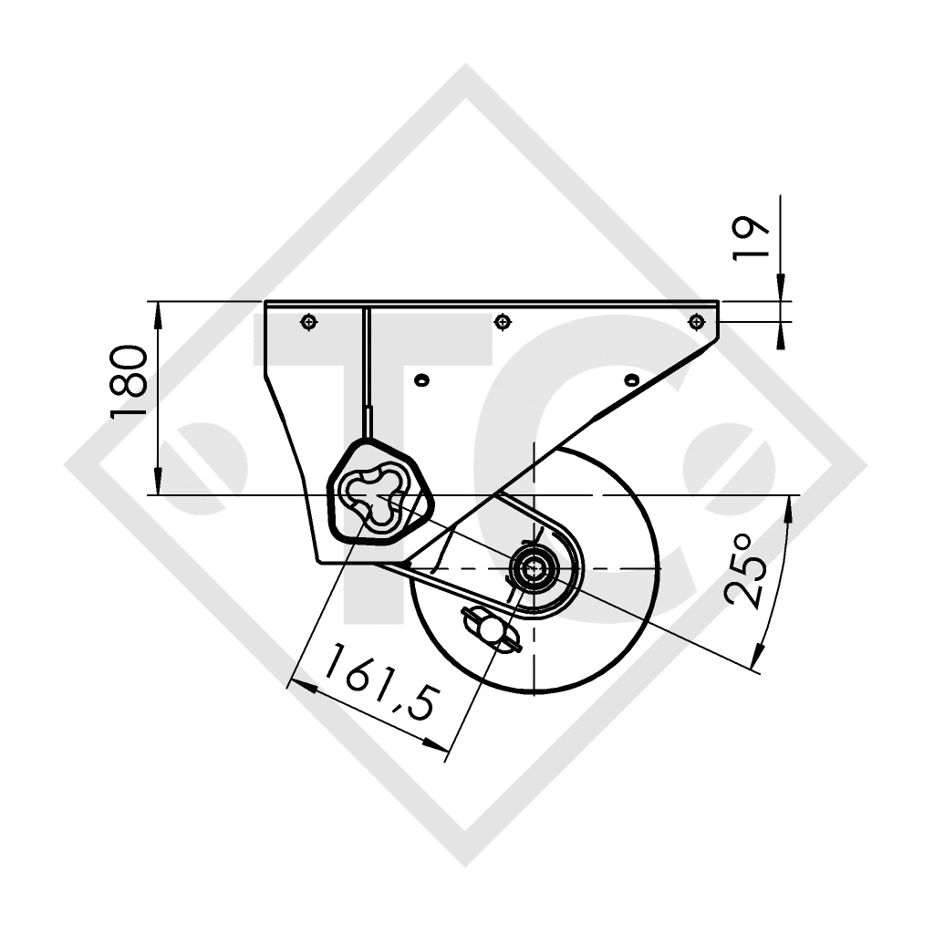 larghezza ai supporti: misura A 1546mm, larghezza complessiva: misura C 1856mm, attacco ruota 112x5, freno ruota tipo 2051 Aa, campanatura (ET) 26-30mm, posizione del braccio oscillante 25°, profilo assale 97mm. Per saperne di più...