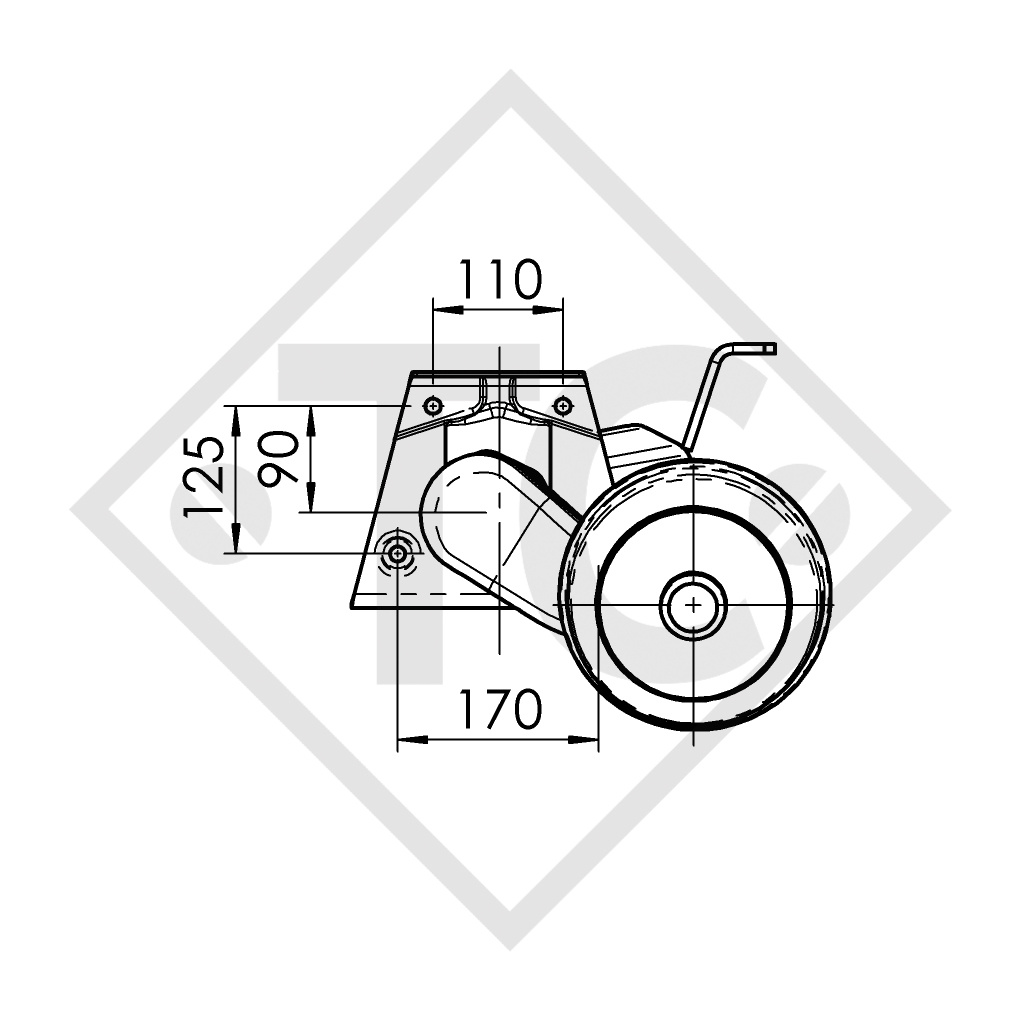 larghezza ai supporti: misura A 1315mm, larghezza complessiva: misura C 1810mm, attacco ruota 100x4, freno ruota tipo 2051 A, campanatura (ET) 26-30mm, posizione del braccio oscillante 16°, profilo assale 97mm. Per saperne di più...