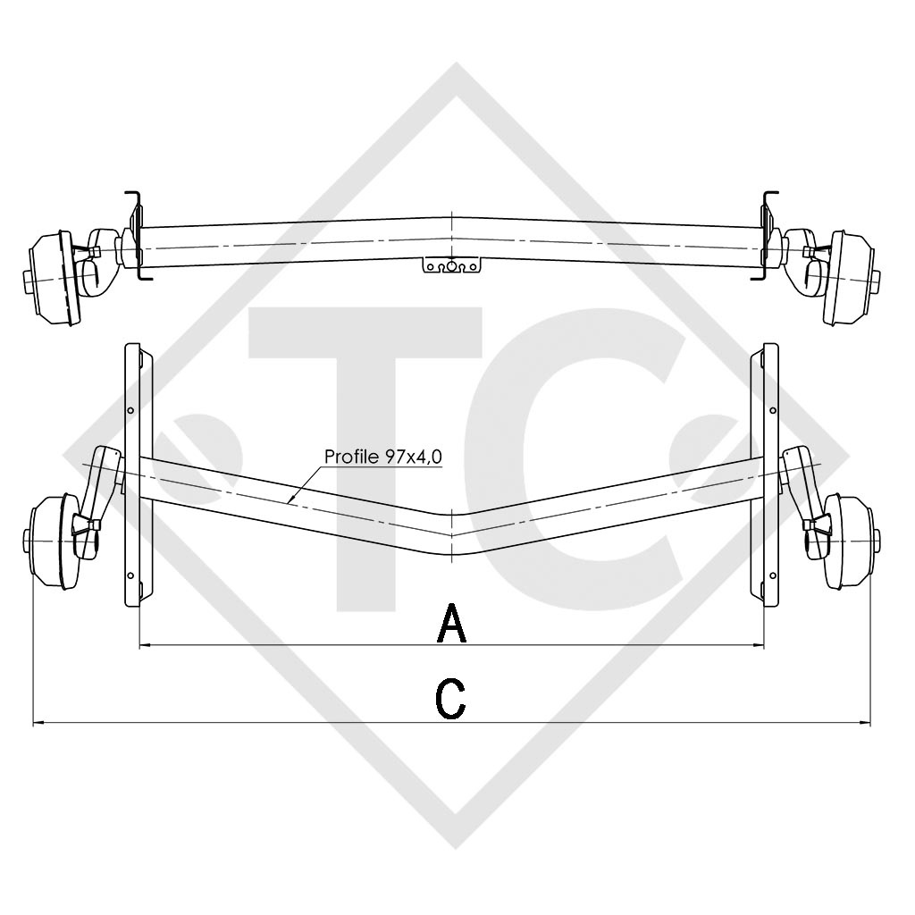 larghezza ai supporti: misura A 1520mm, larghezza complessiva: misura C 2038mm, attacco ruota 112x5, freno ruota tipo 2051 vers. Ab, campanatura (ET) 30mm, posizione del braccio oscillante 16°, profilo assale 97mm, colonnette ruote a sfera M12x1.5. Per saperne di più...