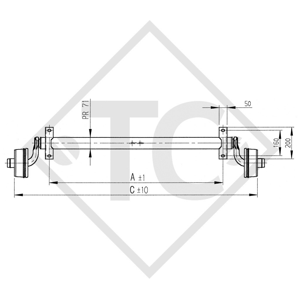 larghezza ai supporti: misura A 720mm, larghezza complessiva: misura C 1180mm, attacco ruota 98x4, freno ruota tipo 1636G, campanatura (ET) 27-45mm, posizione del braccio oscillante 30°, profilo assale 71mm, colonnette ruote a cono M12x1.5. Per saperne di più...