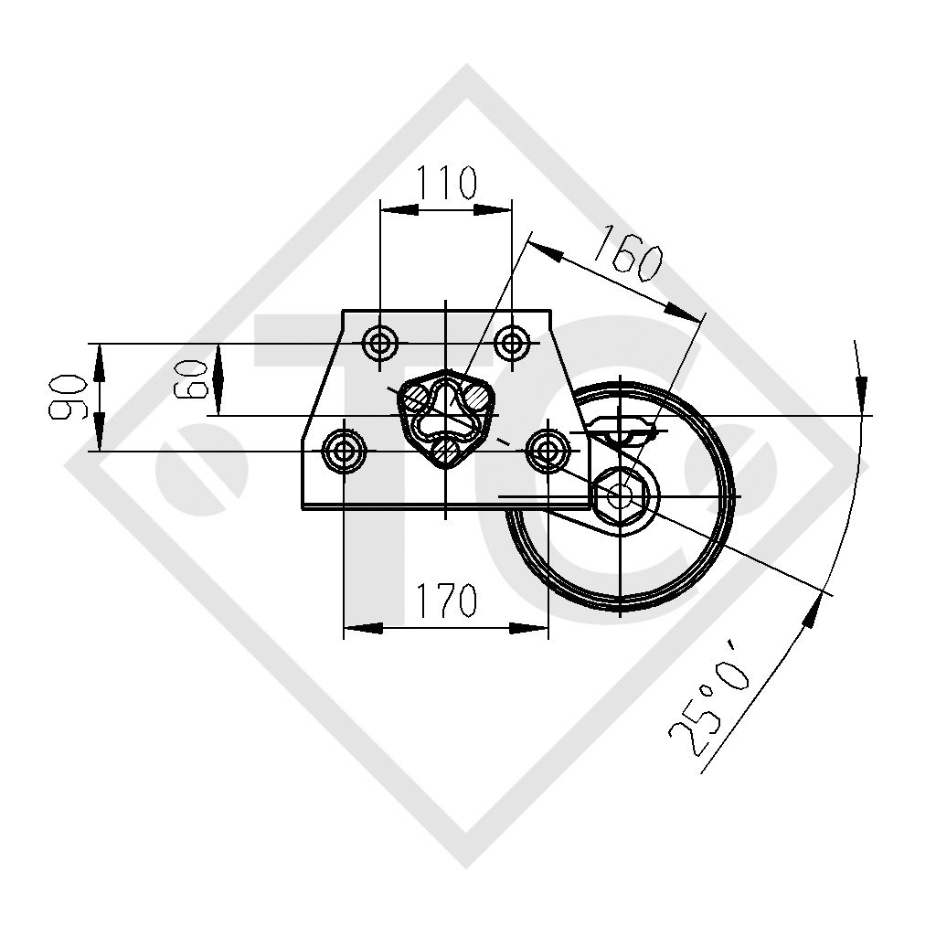 larghezza ai supporti: misura A 1450mm, larghezza complessiva: misura C 1960mm, attacco ruota 100x4, freno ruota tipo 1637, campanatura (ET) 27-33mm, posizione del braccio oscillante 25°, profilo assale 80mm, colonnette ruote a cono M12x1.5. Per saperne di più...