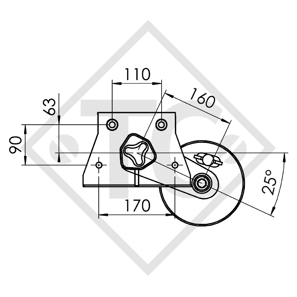 larghezza ai supporti: misura A 1365mm, larghezza complessiva: misura C 1861mm, attacco ruota 100x4, freno ruota tipo 1637, campanatura (ET) 27-33mm, posizione del braccio oscillante 25°, profilo assale 80mm, senza colonnette ruote a sfera M12x1.5. Per saperne di più...