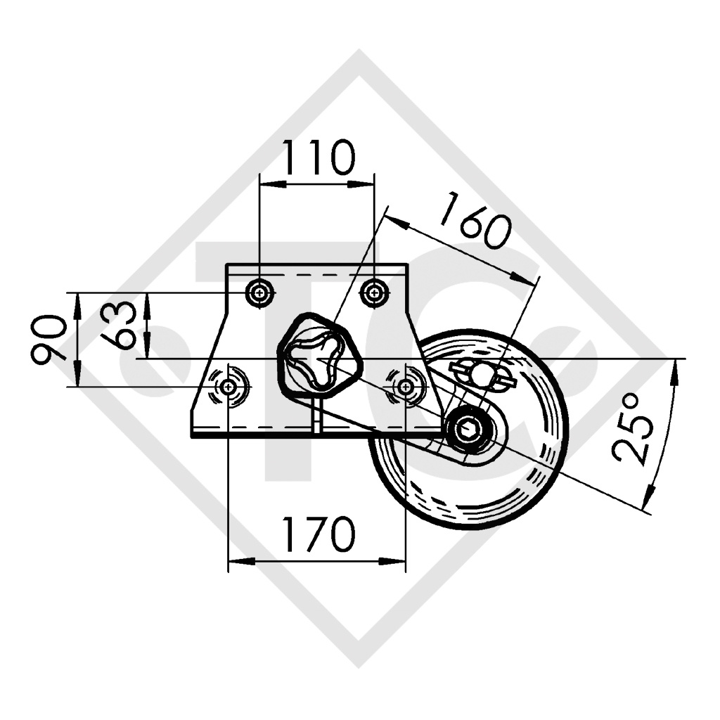 larghezza ai supporti: misura A 1410mm, larghezza complessiva: misura C 1870mm, attacco ruota 100x4, freno ruota tipo 1637, campanatura (ET) 27-33mm, posizione del braccio oscillante 25°, profilo assale 80mm. Per saperne di più...