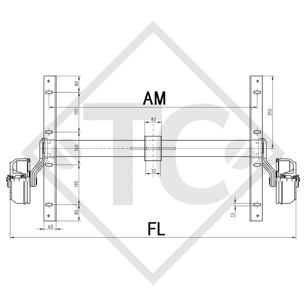 larghezza ai supporti: misura AM 880mm, complessiva: misura FL 1260mm, attacco ruota 112x5, freno ruota tipo S 2005-7 RASK, campanatura (ET) 30mm, posizione del braccio oscillante 20°, profilo assale 80mm. Per saperne di più...