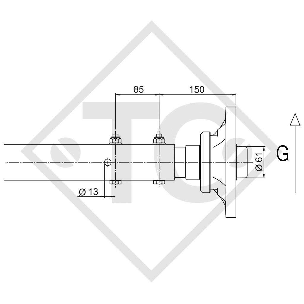 F: Attenzione: Posizionare la saldatura del tubo quadrato nella direzione di marcia sul retro! Montare la fresatura del fusello sulla saldatura del tubo quadrato!