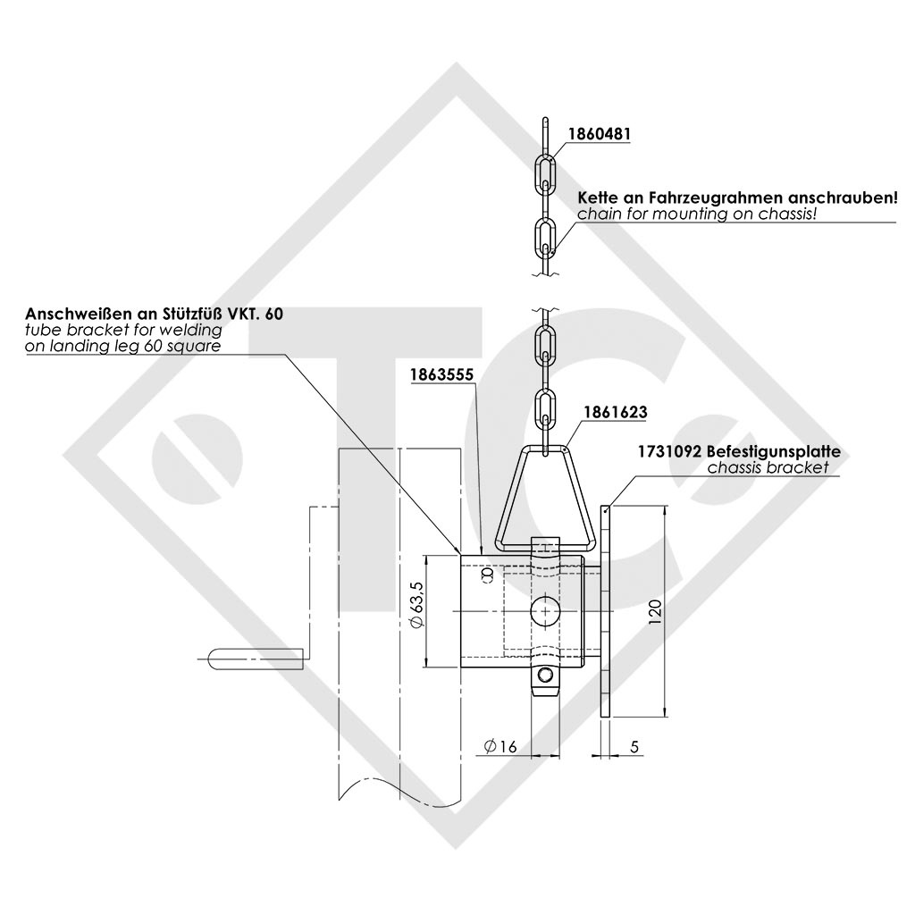 Home / Kit fissaggio ruotino d'appoggio 90° girevole lateralmente, 1863553, idonei a tutti i tipi di rimorchio