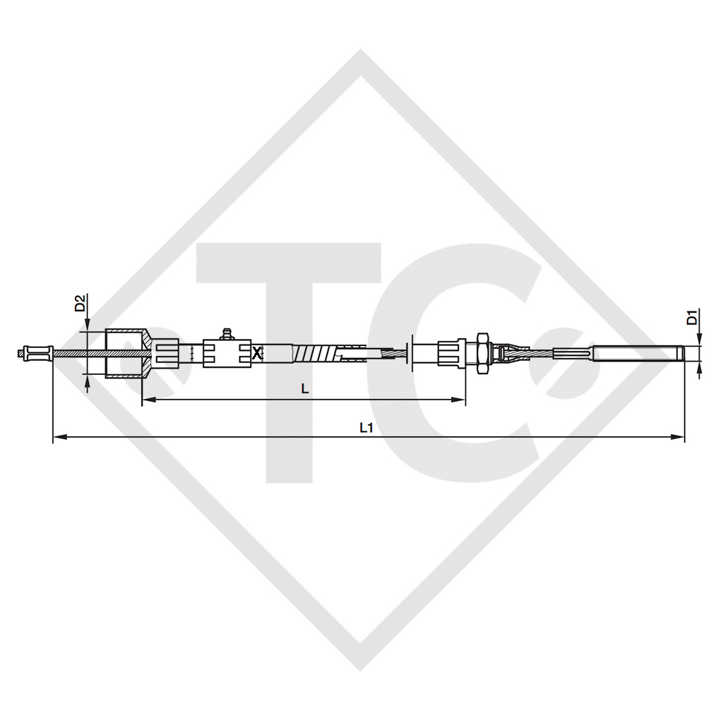 longitud funda (L) 1330mm, longitud cable (L1) 1555mm, adecuado para freno de rueda S1704-7, S2005-7, S2035-7, S2304-7 y S2504-7, campana interior 23.3mm, exterior 26mm. Per saperne di più...