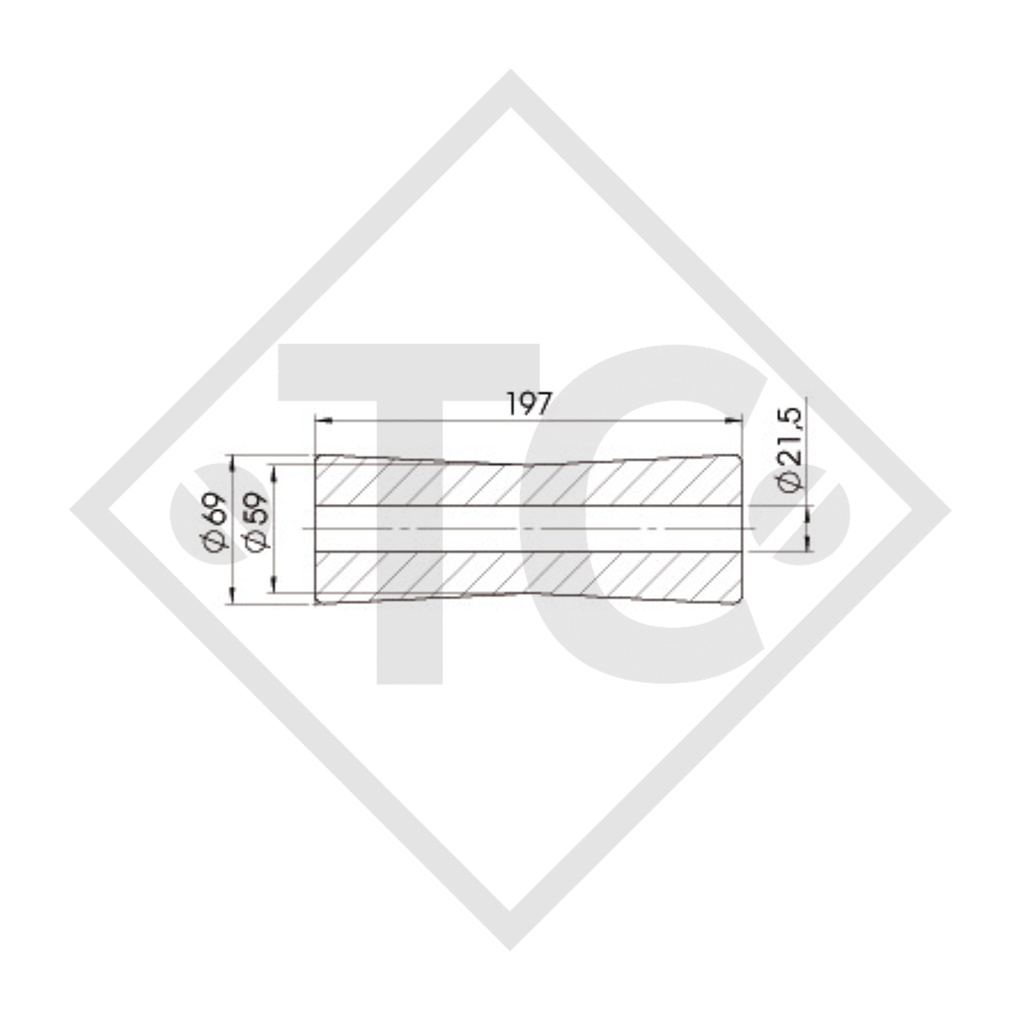 Home / AUTOTELAI PER RIMORCHI, COMPONENTI / AUTOTELAI PER RIMORCHI, COMPONENTI BPW / ASSALI / ASSALE FRENATO 3500KG RONDO, TIPO DI ASSALE DS 3006, TUBO ASSALE RETONDO 125MM / Rullo per carrelli portabarche, rullo chiglia nero, Ø69x197mm