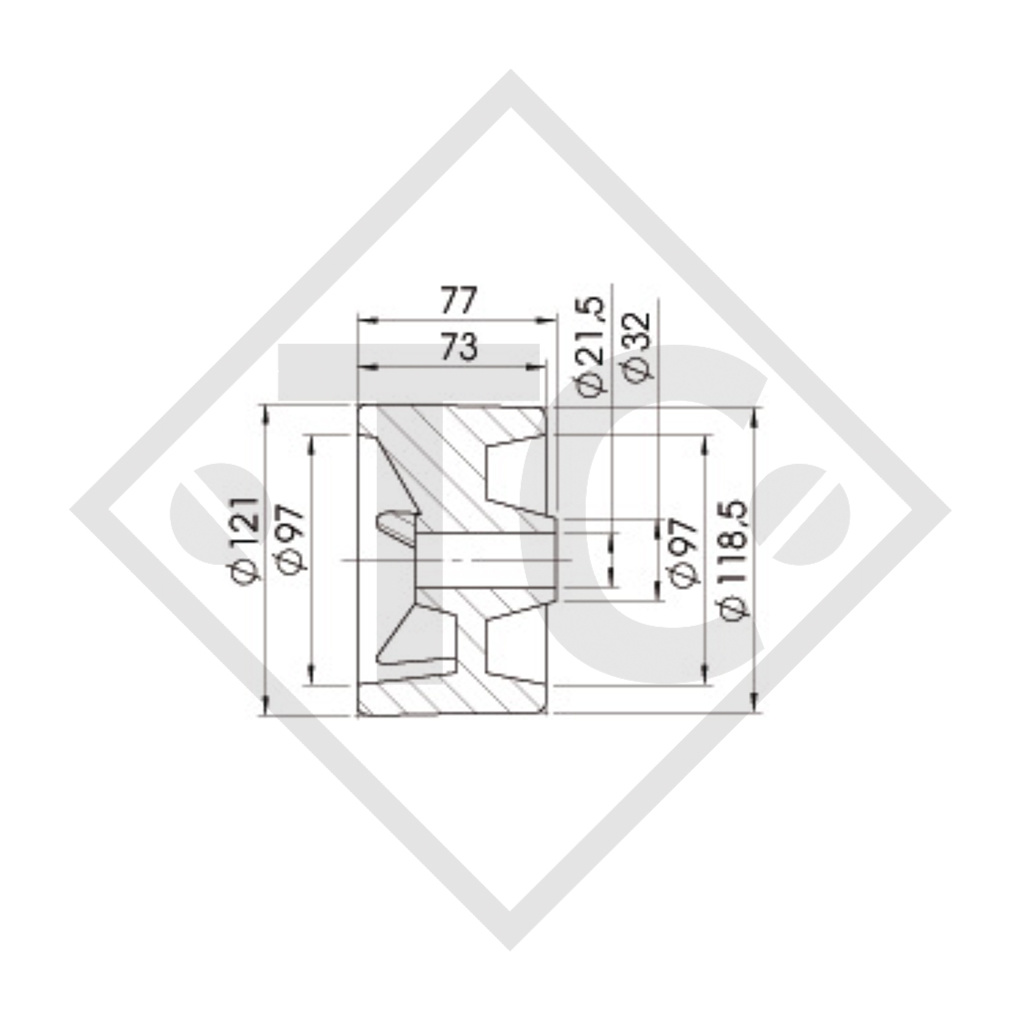 | Misura (D x L) / foro | Ø 121 x 77 mm / Ø 21,5 mm |