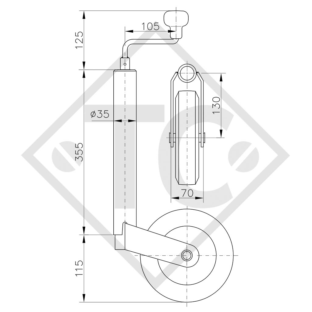 Home / LISTA PARTI DI RICAMBIO ASSALE / LISTA PARTI DI RICAMBIO ASSALE AL-KO / MOZZI PER RIMORCHI NON FRENATI / Ruotino d'appoggio ø35mm tondo, tipo ST 35-160 V, per caravan, rimorchi auto, macchine per l'edilizia