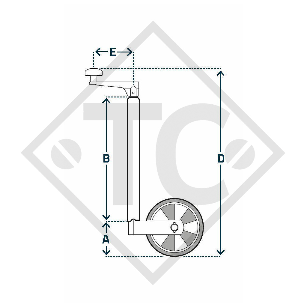 corsa della vite (lunghezza di estrazione) 190mm, Ruota gomma piena 245x70mm, portata statica max 150kg, misura A 135mm, misura B 390mm, misura D 610mm, misura E 110mm. Per saperne di più...