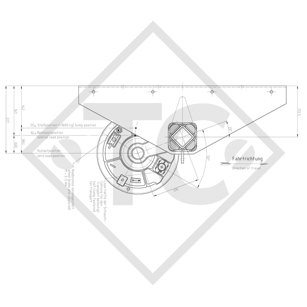 larghezza ai supporti: misura AM 1200mm, larghezza complessiva: misura FL 1625mm, attacco ruota 112x5, freno ruota tipo RB425, campanatura (ET) 27-40mm, posizione del braccio oscillante 20°, profilo assale 95mm. Per saperne di più...