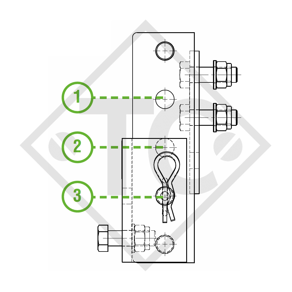 regolabile in altezza: 3 Positionen in Schritten von jeweils 50mm, variante 1 perno, perno con Ø 19mm per il fissaggio sicuro con coppiglie, piastra scorrevole preforata con 4 fori per il fissaggio con 2 o 4 bulloni secondo la direttiva ECE-R55-01 ECE-R55 Per saperne di più...